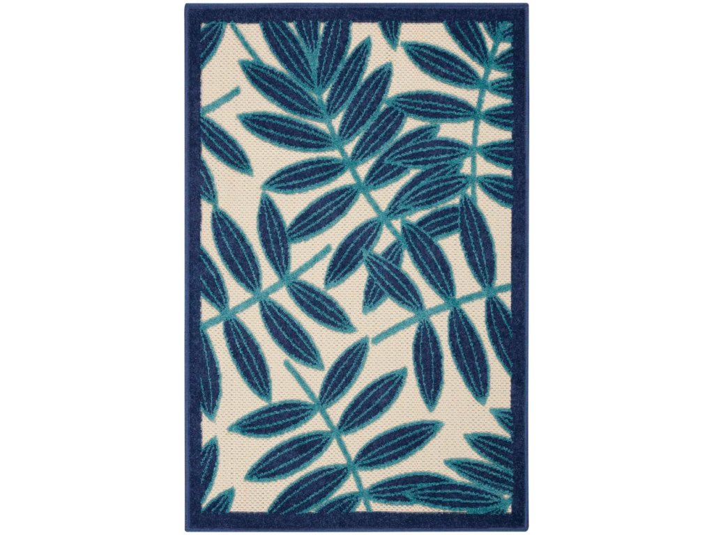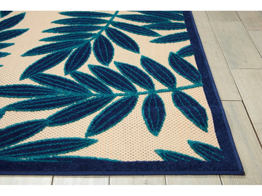 Product Description A cheerful and charming oversized leaf design is a fun, flirty, and fashionable way to uplift any environment, especially when presented in complementary hues of navy blue and ivory. This Aloha indoor/outdoor area rug from Nourison is created from premium stain-resistant fibers for long wear, low maintenance, and a splendid texture.