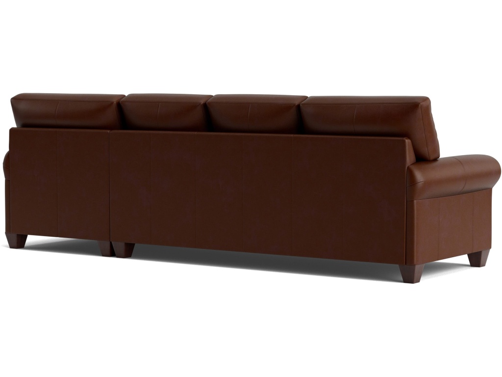 The Bassett Living Room Carolina Leather Roll Arm Chaise Sectional is available in the St. Augustine, FL area from Leather by Design. Please request information here or call our store to verify availability.