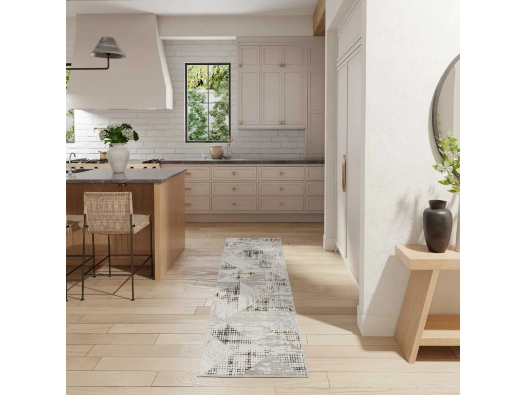Product Description Glam meets modern with this geometric rug from the Glitz Collection. The abstract tiled pattern is interspersed with a multicolored grid design that adds a pop of contrast, which is finished with shimmering accents that beautifully captures changes in light. Made from softly textured polyester yarns that are easy to clean.