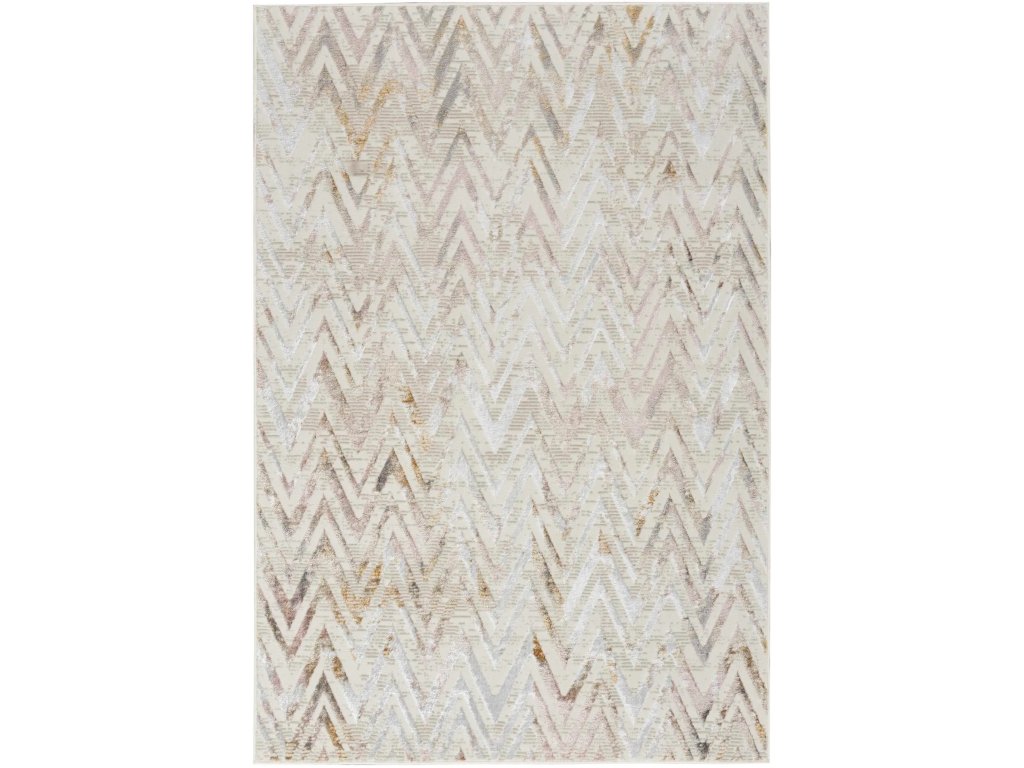 Product Description The classic chevron pattern gets a modern update with this contemporary rug from the Glitz Collection. The geometric design is presented in soft multicolored shades with a subtly distressed finish and shimmering accents that shift under different lighting. Made from softly textured, easy to clean polyester yarns.