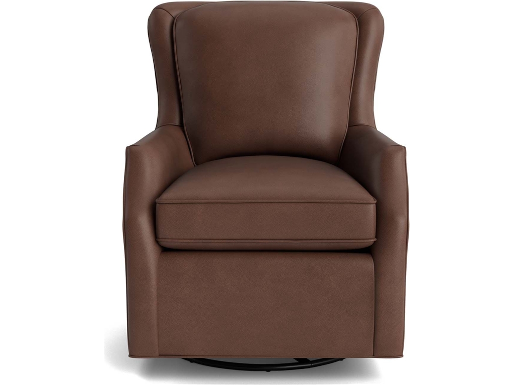 The Bassett Furniture Living Room Kent Leather Slope Arm Swivel Glider is available in the St. Augustine, FL area from Leather by Design. Please request information here or call our store to verify availability.