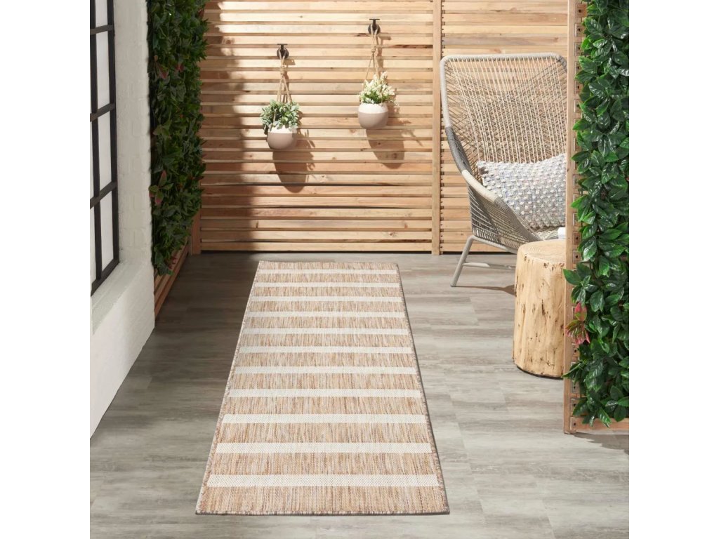 Product Description Invite coastal-inspired charm to your home with this beige striped outdoor rug from the Positano Collection. The space-dyed yarns add nuanced variations in color, while the flat weave construction makes placement a breeze. Roll this modern rug onto your patio, deck, or porch to create a cozy and casual conversation area, or add to your living room, dining room, or kitchen for low-maintenance yet eye-catching style. Machine-made from polypropylene yarns that are durable and easy to clean: simply hose rinse and air dry.