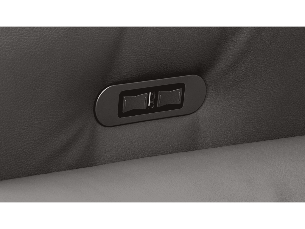 The power headrest and recline functions are easily managed through the use of a sleek activation switch that includes USB charging.
